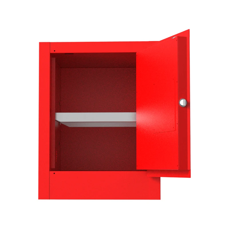 Oppbevaringsskapet for brennbare kjemikalier er konstruert med en dobbeltlags stålplatestruktur, som i stor grad forbedrer styrken og stabiliteten til skapkroppen. I industriell produksjon, når den står overfor hyppig håndtering og kollisjoner, kan den gi pålitelig fysisk beskyttelse for de brennbare kjemikaliene som er lagret inne, og forhindrer potensielle farer forårsaket av lekkasje av brennbare gjenstander på grunn av skapskader. Den er egnet for steder som lager for kjemiske råvarer.