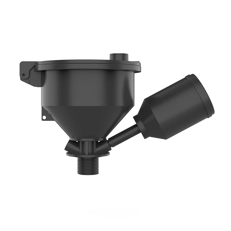 Den indre diameteren til trakten er 130 mm og den ytre diameteren er 158 mm. Den har designet til et lekkasjesikkert toppdeksel. Råvarene er sprøytestøpt av importerte antistatiske materialer, utstyrt med et tetningsdeksel og en sprutsikker filtertraktdesign. En ventil kan eventuelt installeres under trakten for å sikre sikkerheten til den forseglede avfallsvæsken. Toppdekselet er av typen motvekt. Når det indre trykket når 100 Pa, åpnes toppdekselet automatisk for å slippe ut eksosgassen for å forhindre eksplosjon og spontan forbrenning. Når trykket er mindre enn 50Pa, lukkes dekselet automatisk.